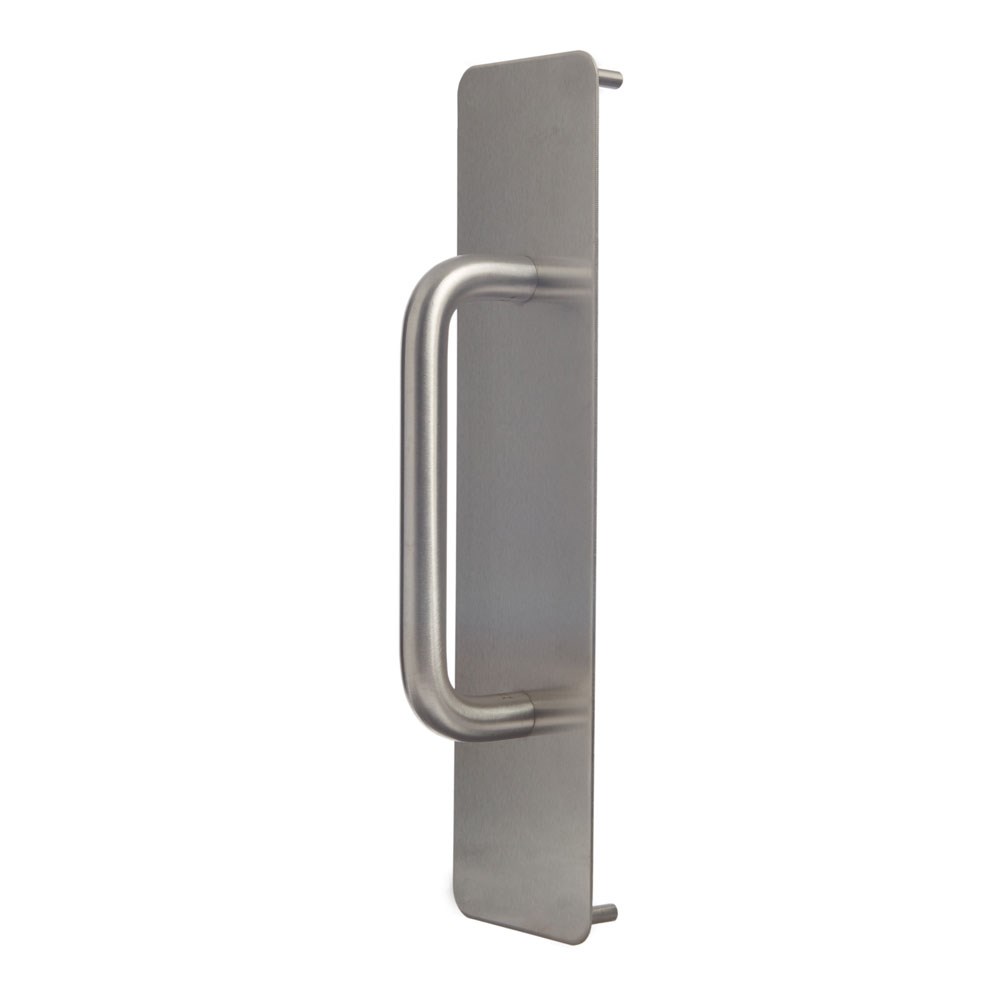 dormakaba Concealed fix stainless steel pull handle on plate for fixing back to back through the door.