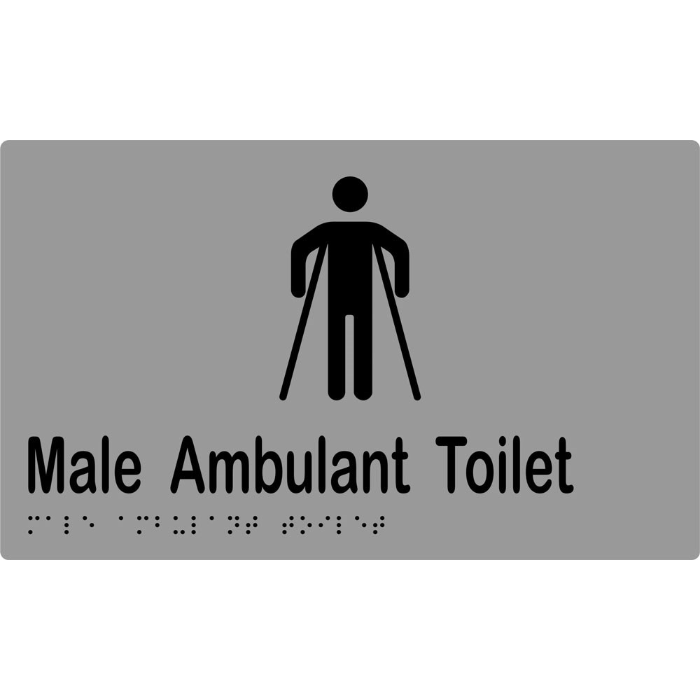 K-Jam Male ambulant toilet sign with braille 220x150 mm laminated vinyl silver over black.