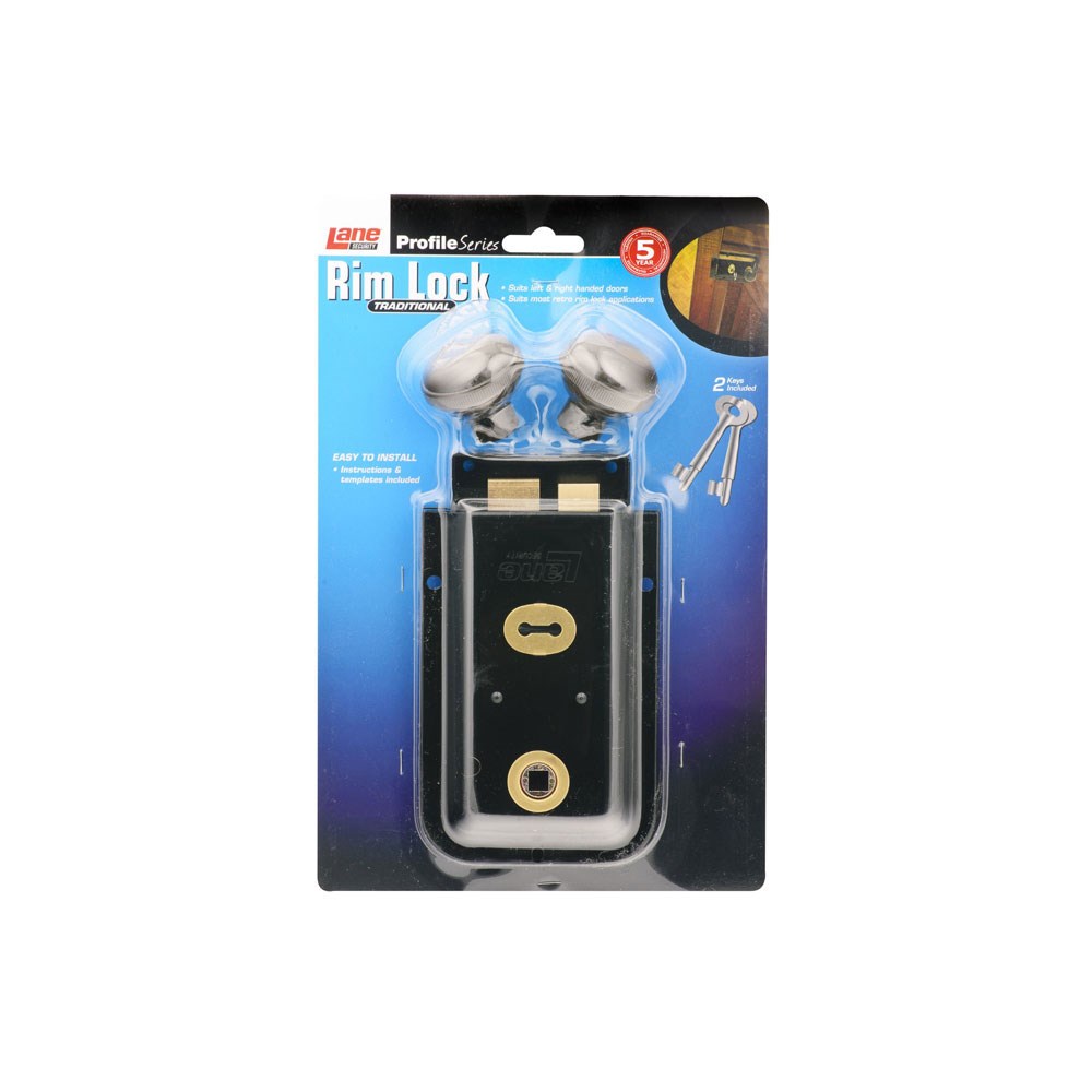 This stylish black, zinc alloy rim lock is suitable to replace most existing rim locks and is easy to install.
