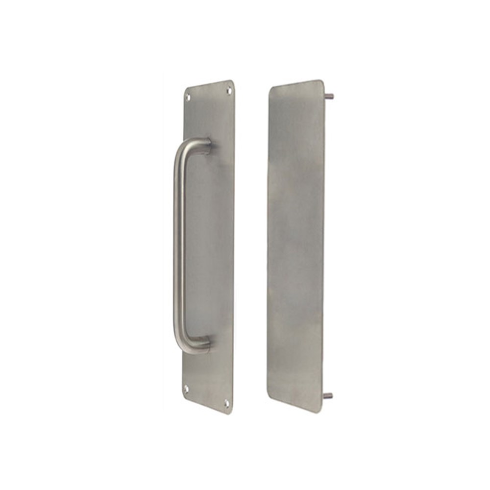 dormakaba concealed and visible fix stainless steel push and pull plates for fixing back to back through the door.