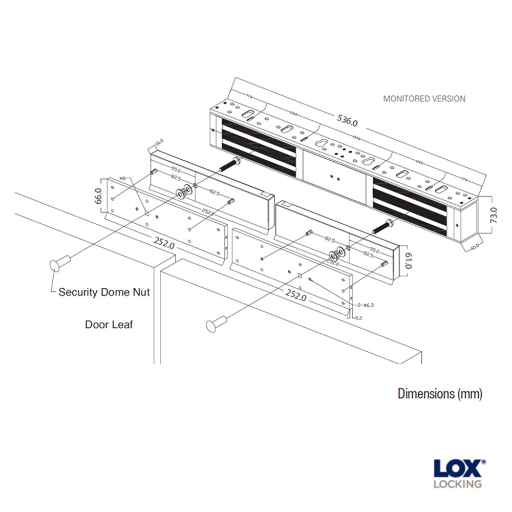 LOX LEM5700 series maglock to suit double doors monitored.