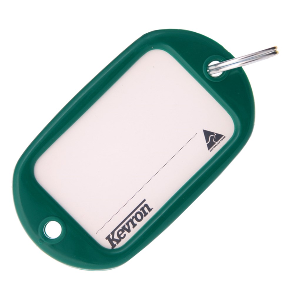 Kevron ID10 jumbo motel key tags in dark green.