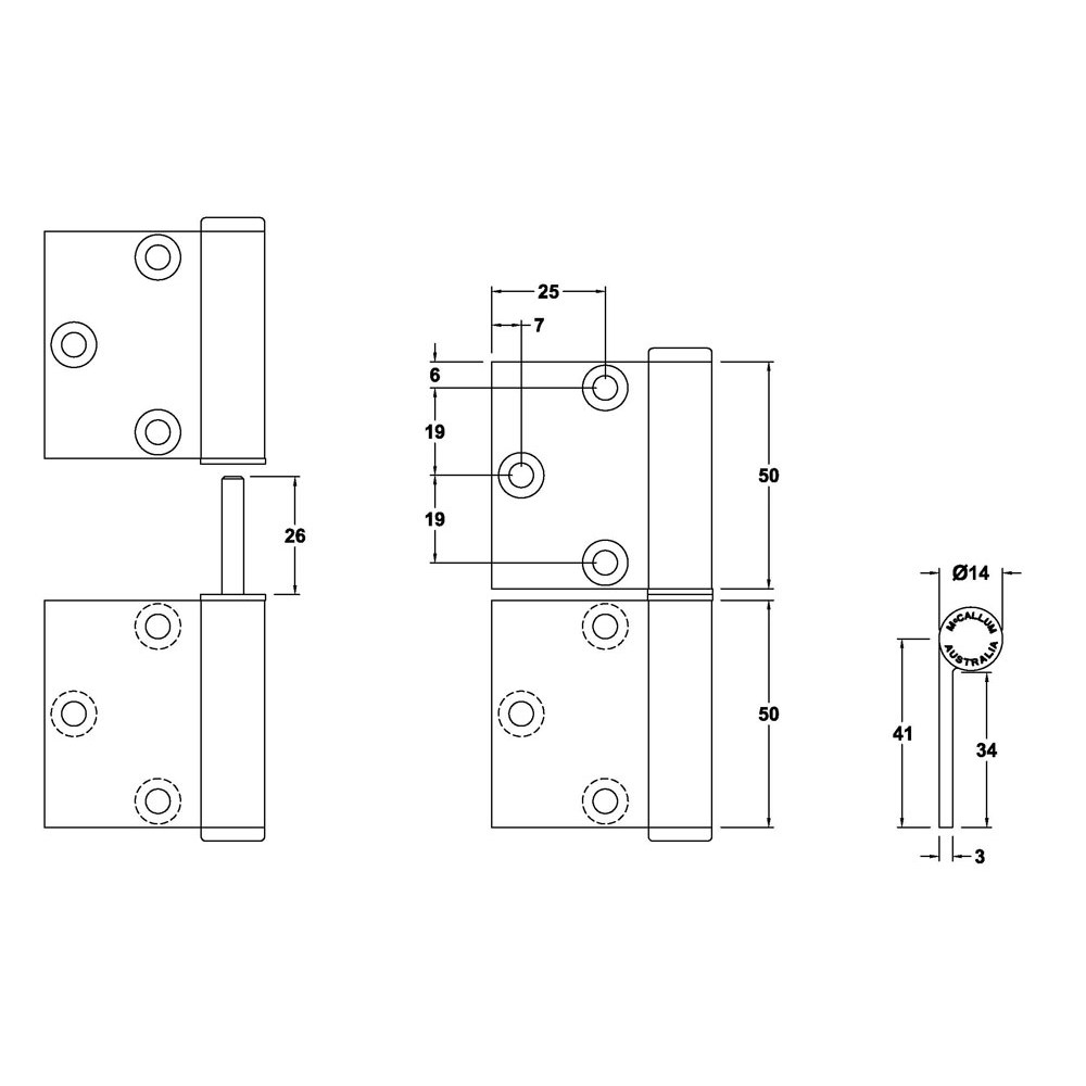 - Hinge Pin length 25 mm.