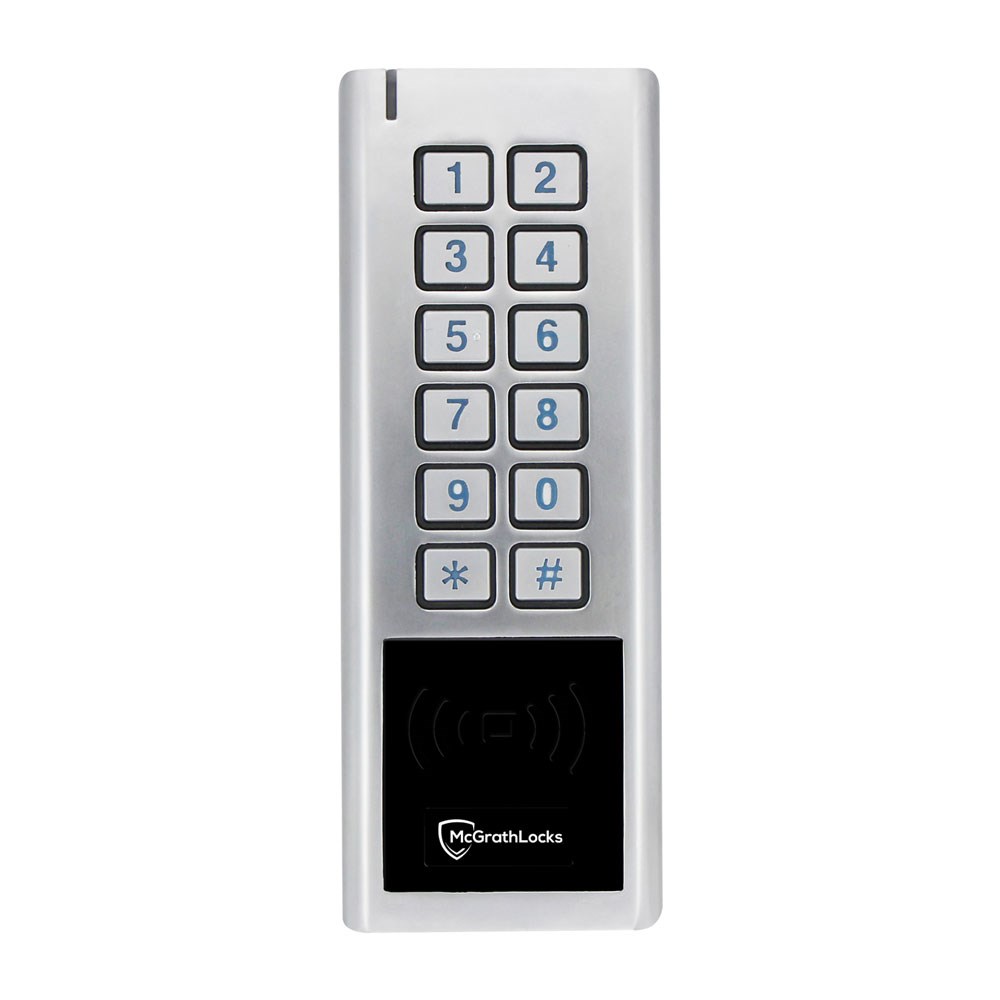 McGrath Locks RBB56 Wireless Battery Powered Keypad, RFID and BLE, Metal Construction, IP65 Rating, Requires 3 x AAA Batteries (not included), Silver Finish, Supplied With 2 x Fobs