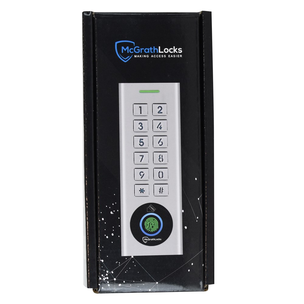 The McGrath Locks RBH52 is a standalone keypad featuring raised buttons with a fingerprint reader and built in Wi-Fi. It provides a number of methods that can be used for controlling access including BLE, pin code, RFID credential and fingerprint. It is a hardwired device that requires a 12v power supply that can be used to control electric strikes, auto doors, garage doors and gates etc.