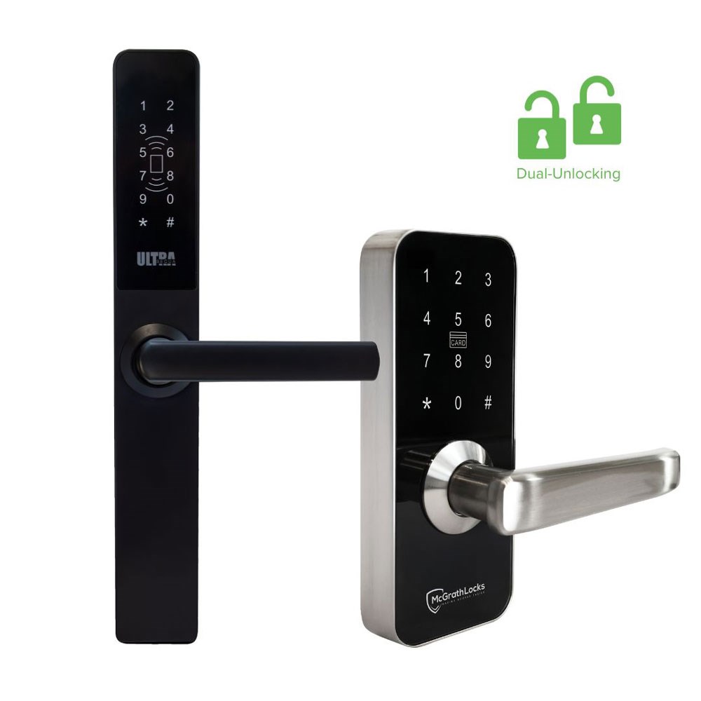 McGrath Ultra-Secua Smart Lock with Dual Unlock Feature, Suits Common Screen Doors, IP66 rating, Black Finish And Supplied With Lock Body