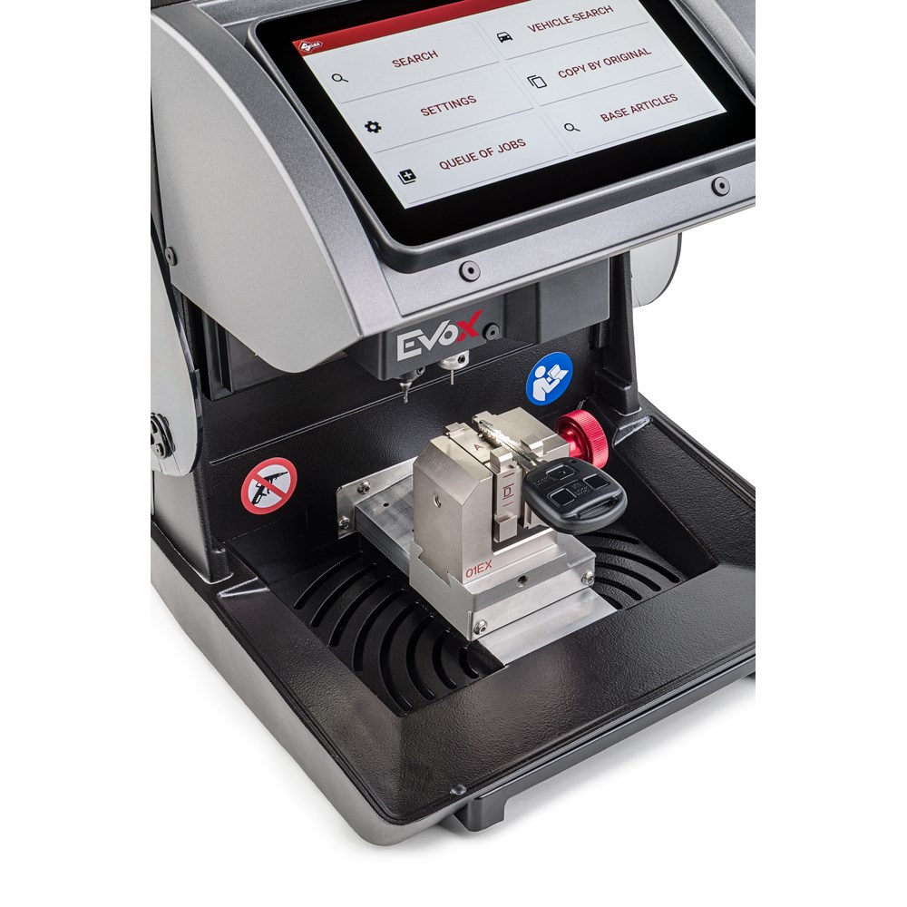 The EvoX by Silca is a electronic key cutting machine for 99% of car keys, designed for high versatility and maximum adaptability in most operating conditions.
