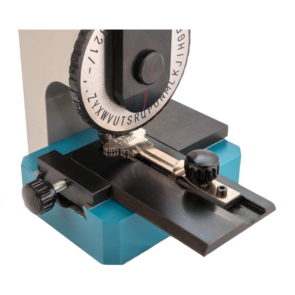 Silca Compound 2 key stamper features an easily adjustable mounting plate to allow for several rows of character stamping, and adjust to securely hold the item in place.